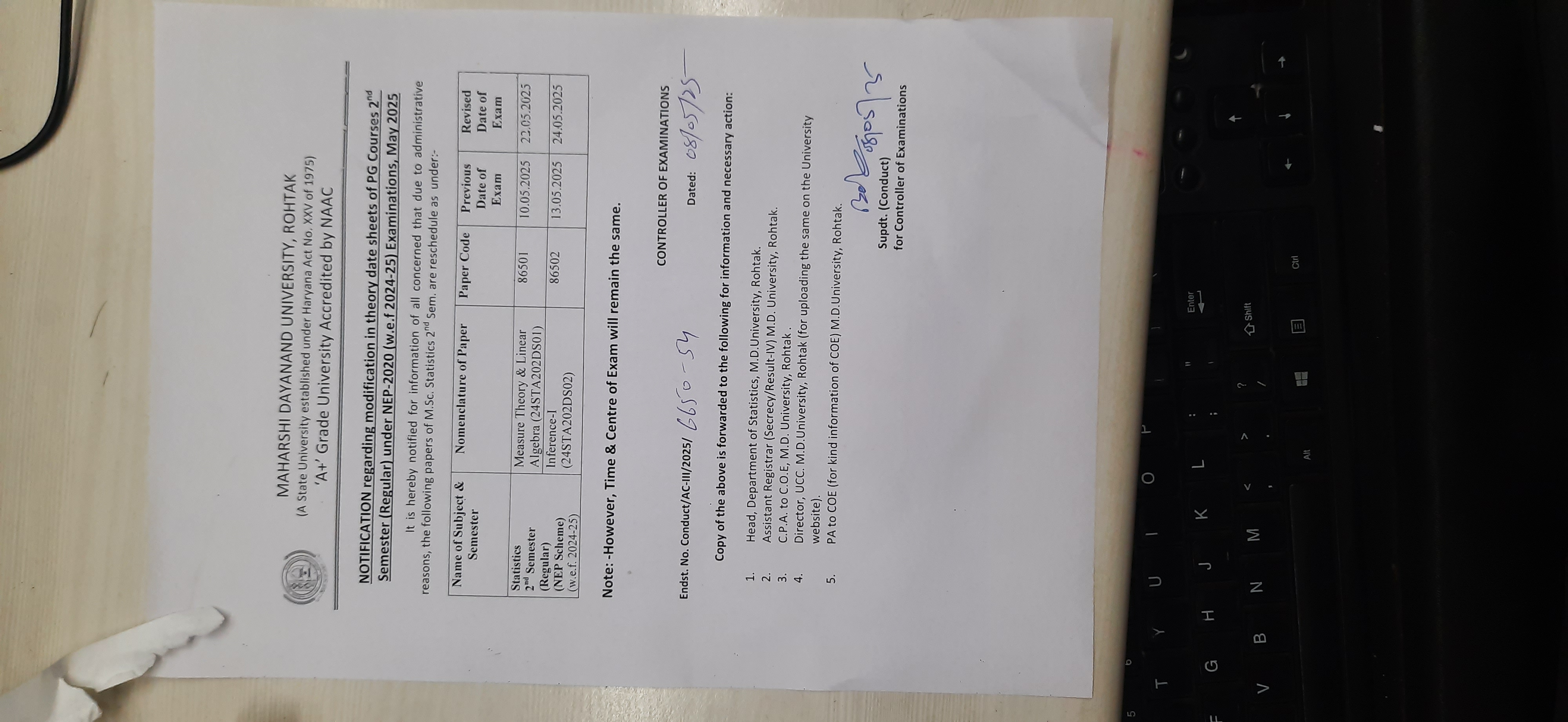 - Notification regarding modification in theory date sheets of PG courses 2nd Sem. (Regular) under NEP-2020 (W.E.F. 2024-25) EXAMINATIONS, May, 2025